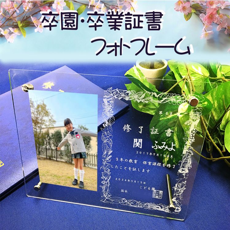 【卒業証書・合格証そのまま】卒園記念 メモリアルフォトフレーム おしゃれ プレゼント オーダーメイド 写真立て アクリル 記念品 写真立て キリッツ 成長記録