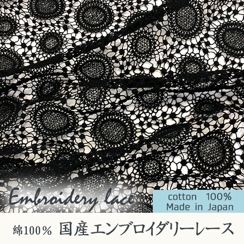 国産レース生地 黒 エンブロイダリーレース 幅96cm 1m 1.5m 2mカット