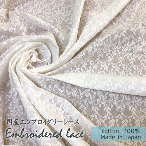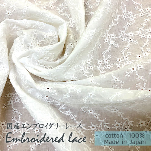 国産レース生地 白 エンブロイダリーレース 幅96cm 1m 1.5m 2mカット