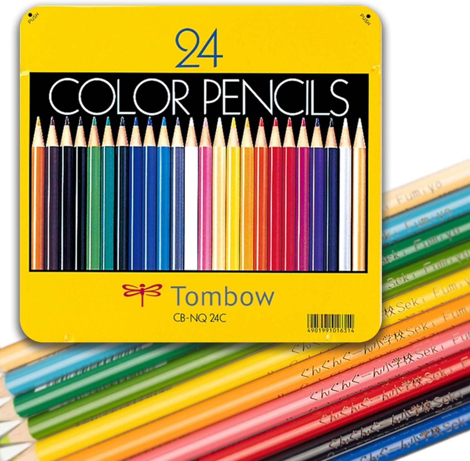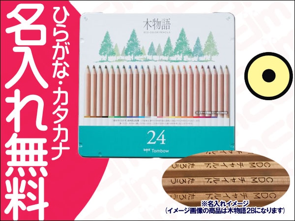 トンボ鉛筆 木物語S 缶入色鉛筆 24色 ひらがな/カタカナ名入れ無料 丸軸 TAH/CB-RS24C