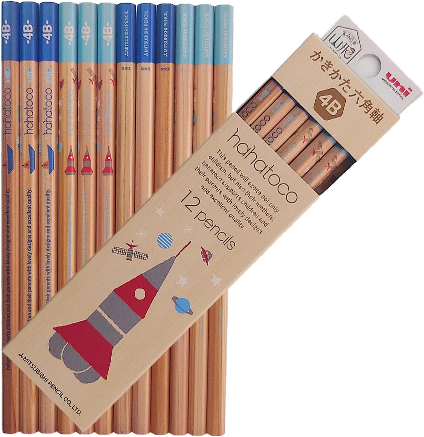 ▽三菱鉛筆 hahatoco かきかた鉛筆 六角軸 硬度2B 紙箱(青) ハハトコ ロケット TBJ-K56222B