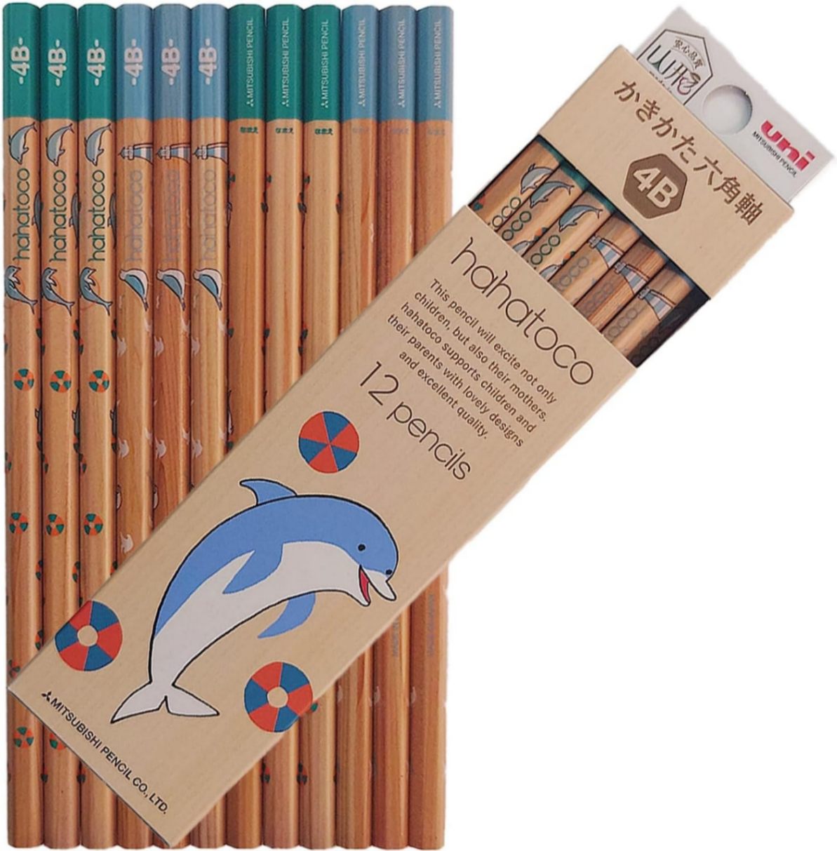 かきかた鉛筆 六角軸 硬度4B 紙箱(青) イルカ