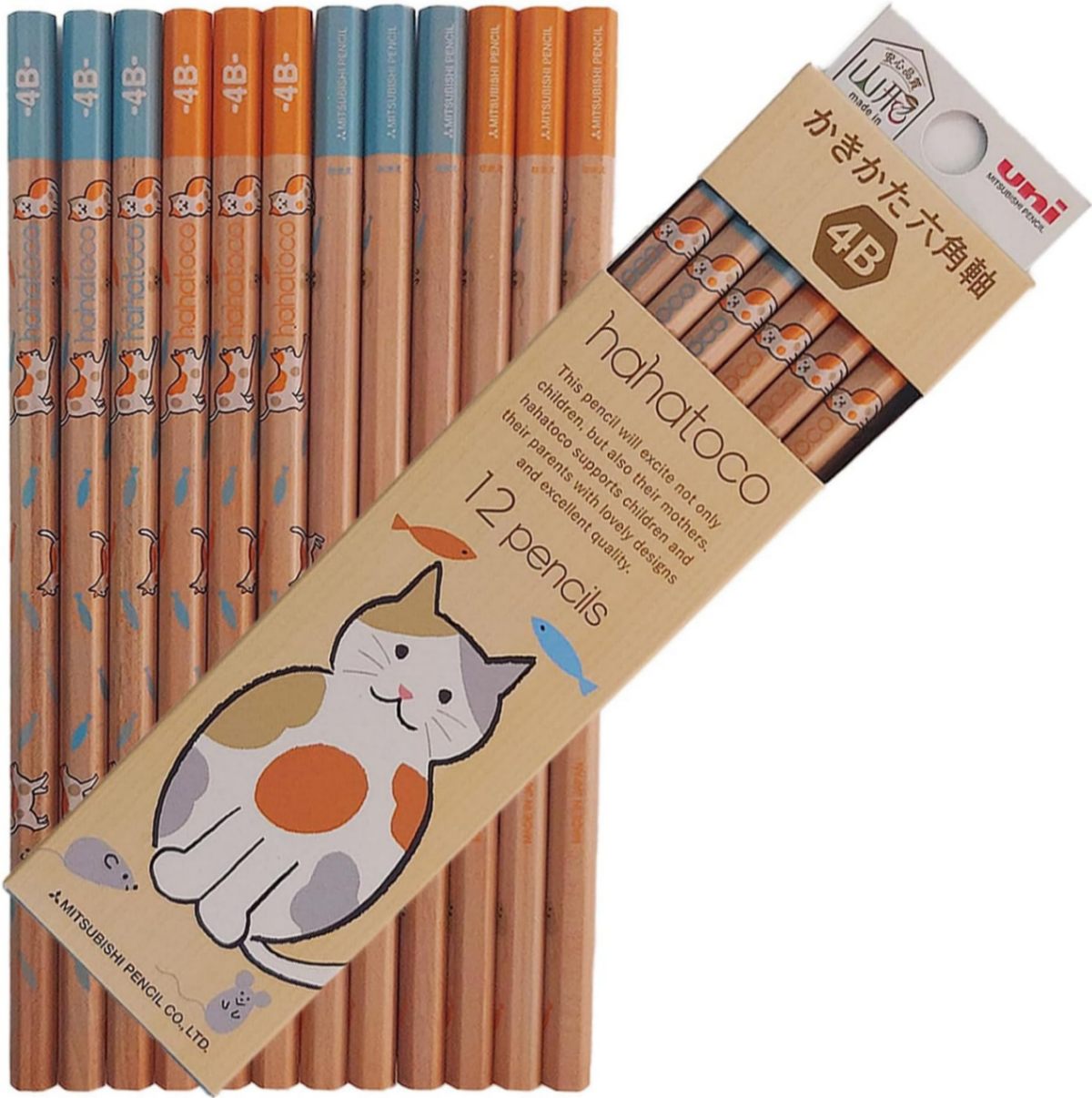 かきかた鉛筆 六角軸 硬度4B 紙箱(青) ネコ 猫